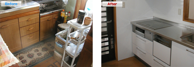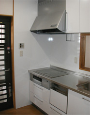 | 工事内容 | キッチン交換、勝手口の取付、フローリング敷き、クロス張替え |