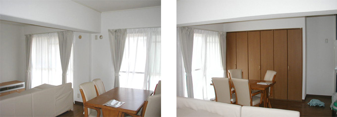 | 工事内容 | 基本全室リフォーム、キッチン、ユニットバス交換、全室フローリング貼り、ウォークインクローゼット取付、全室クロス張替え |